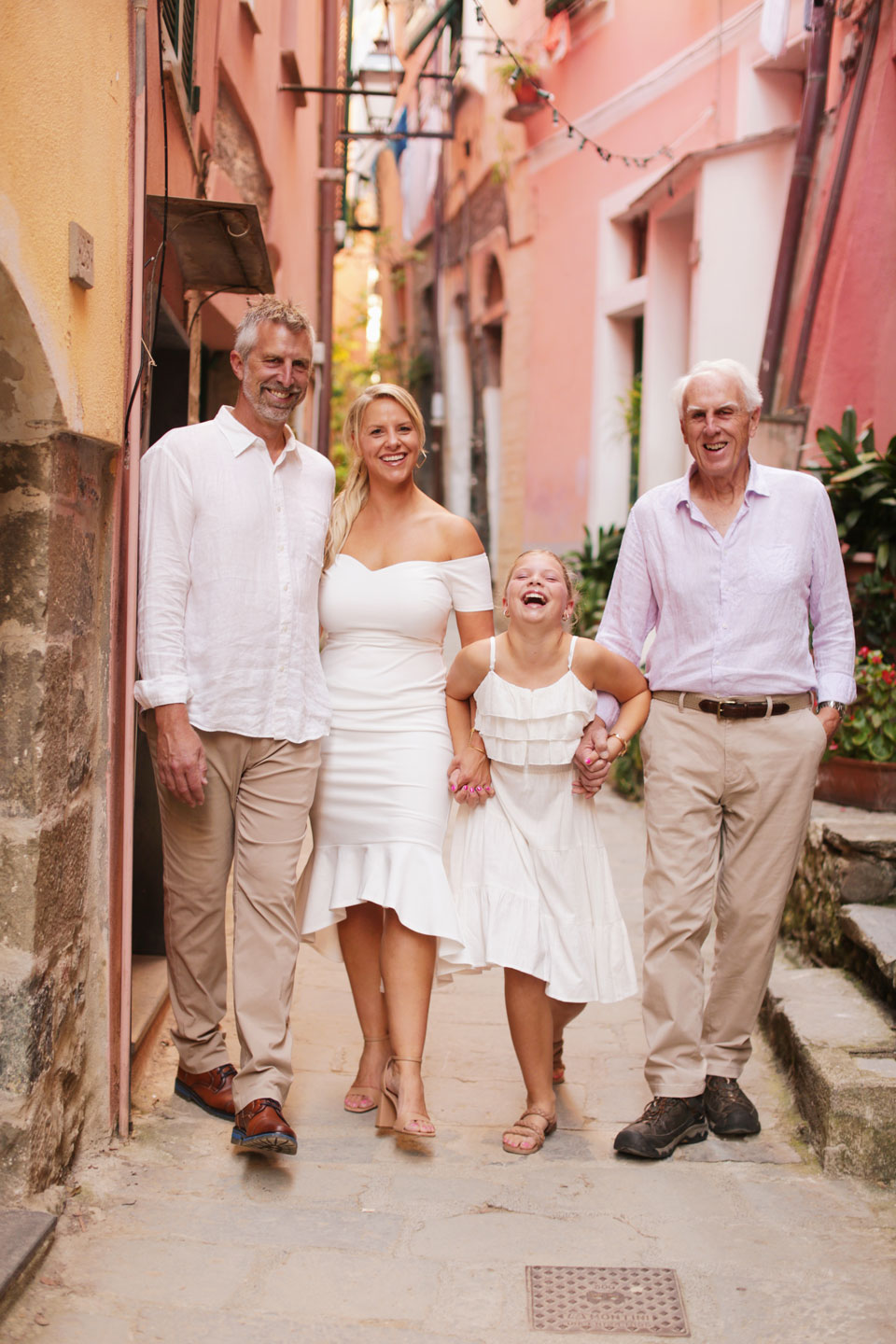 family in vernazza alleys